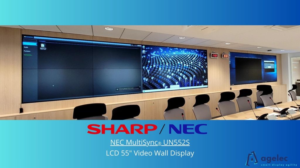 En tout 49 écrans UN552S de la gamme mur d’images SHARP/NEC, 5 matrices KVM, 3 contrôleurs vidéo AGCwall, une solution audio… un projet clé en main avec habillage et interface utilisateur spécifique.