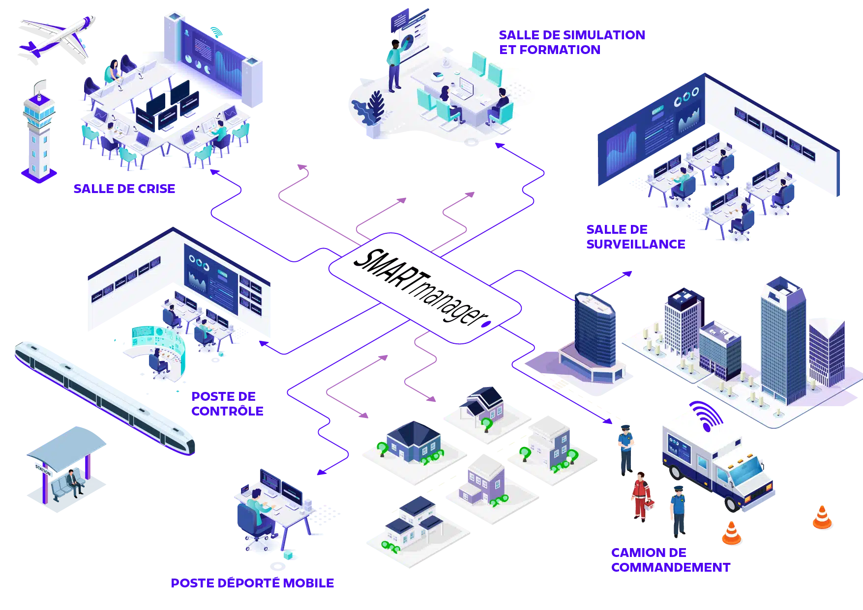 Suite logicielle développée sous Linux, éprouvée au sein d’installations décisionnelles parmi les plus critiques (aéroportuaire, ferroviaire, nucléaire, énergie, sûreté, militaire…), IHM simples et intuitives, dédiées à l’usage, permettant de piloter plusieurs systèmes.